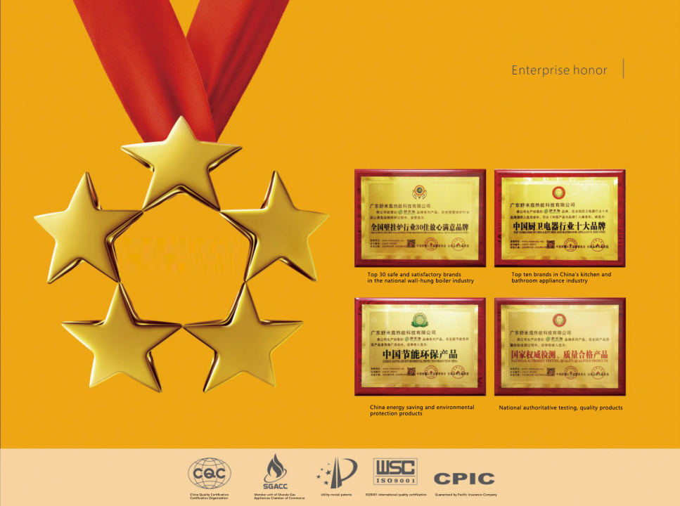 The company has passed ISO9001 international quality management system certification and ISO9004 international environmental system certification. We have introduced international advanced production technology, selected imported original accessories and produced in accordance with EU technical standards. Through cooperation with international technology, the company has developed and launched low-ammonia condensing wall-hung boilers, wall-hung boilers with built-in leakage reporting devices, zero-cold water wall-hung boilers, fully premixed wall-hung boilers, etc., which are currently the largest product series and power in the domestic wall-hung boiler market. There are many models of wall-mounted boilers with technical advantages, and they have a number of independent patented technologies.