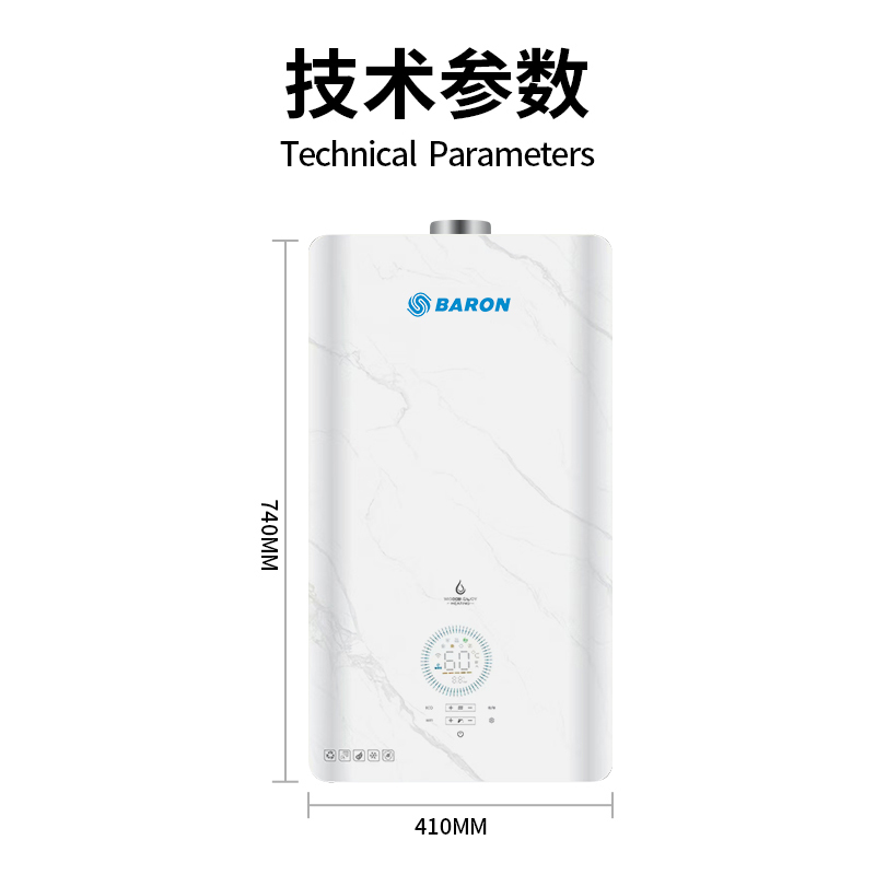 Energy saving gas boilers are used in large apartments and villas: The high-power wall mounted gas boiler can simultaneously provide hot water for two bathrooms and heat the entire house.